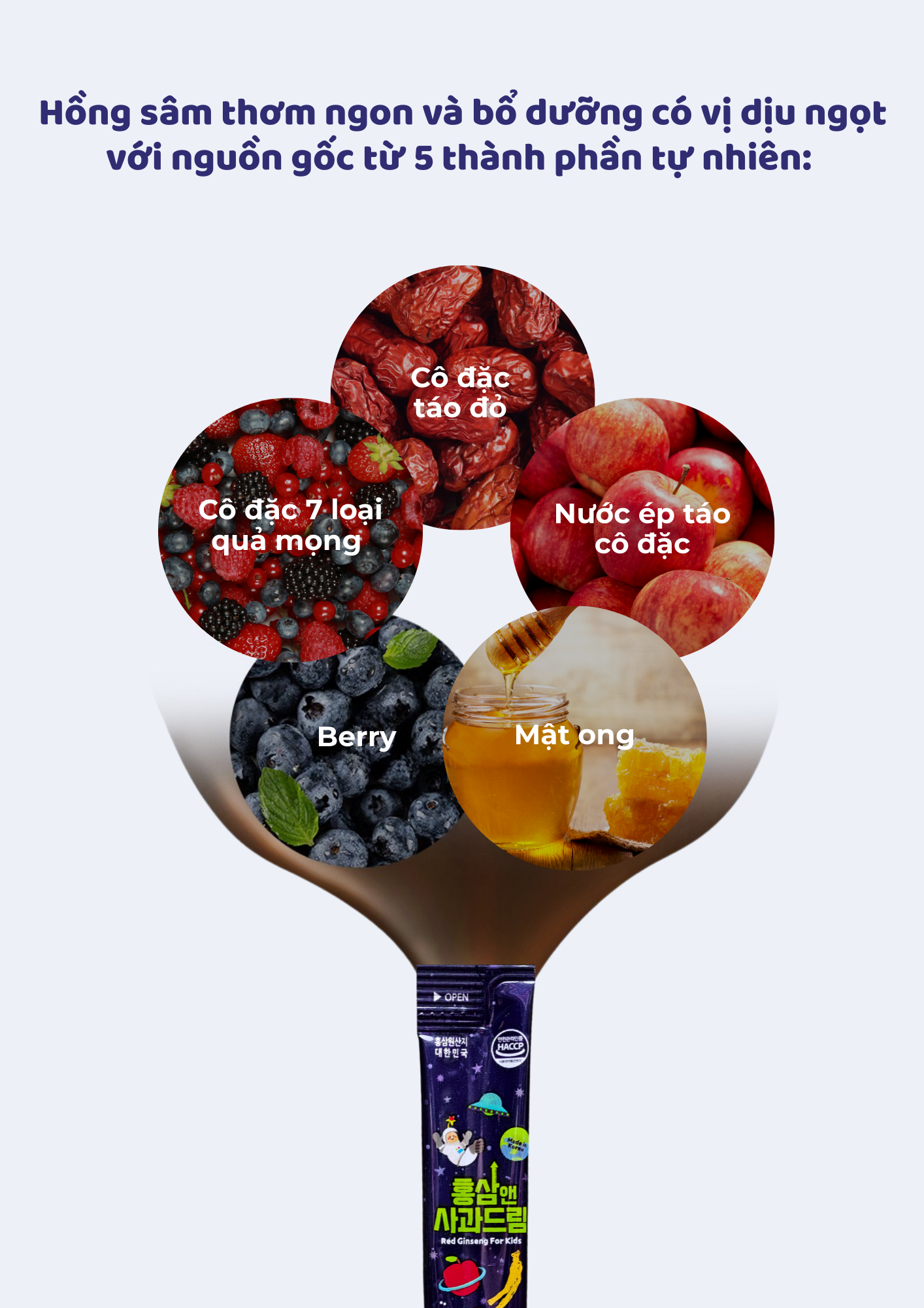 Hương vị yêu thích: Giải quyết nỗi lo trẻ sợ vị đắng của sâm nhờ sự hòa quyện của các loại trái cây tự nhiên.