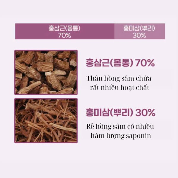 ✨ Để giảm vị đắng của hồng sâm, các thành phần phụ trợ như 15 loại chiết xuất thảo dược cô đặc đã được thêm vào.