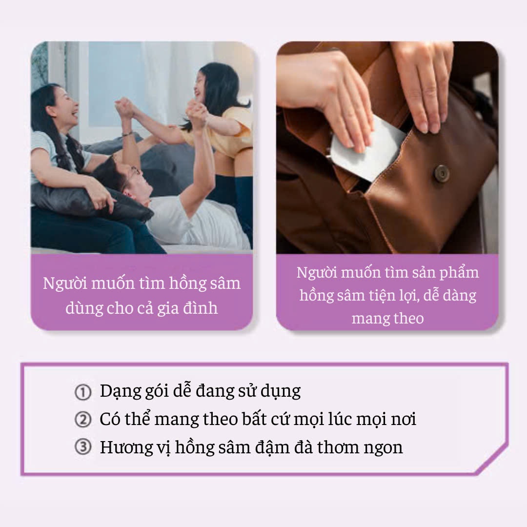 ✨ Với hàm lượng Ginsenoside Rb1 + Rg1 + Rg3 = 10mg trong mỗi gói hồng sâm, giúp củng cố và cải thiện hàng rào miễn dịch, bổ sung năng lượng để cơ thể chống lại những tác nhân gây bệnh.